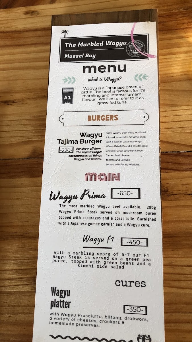 For an extraordinary meal that captivates the senses, The Marbled Wagyu Mossel Bay is a must-visit.